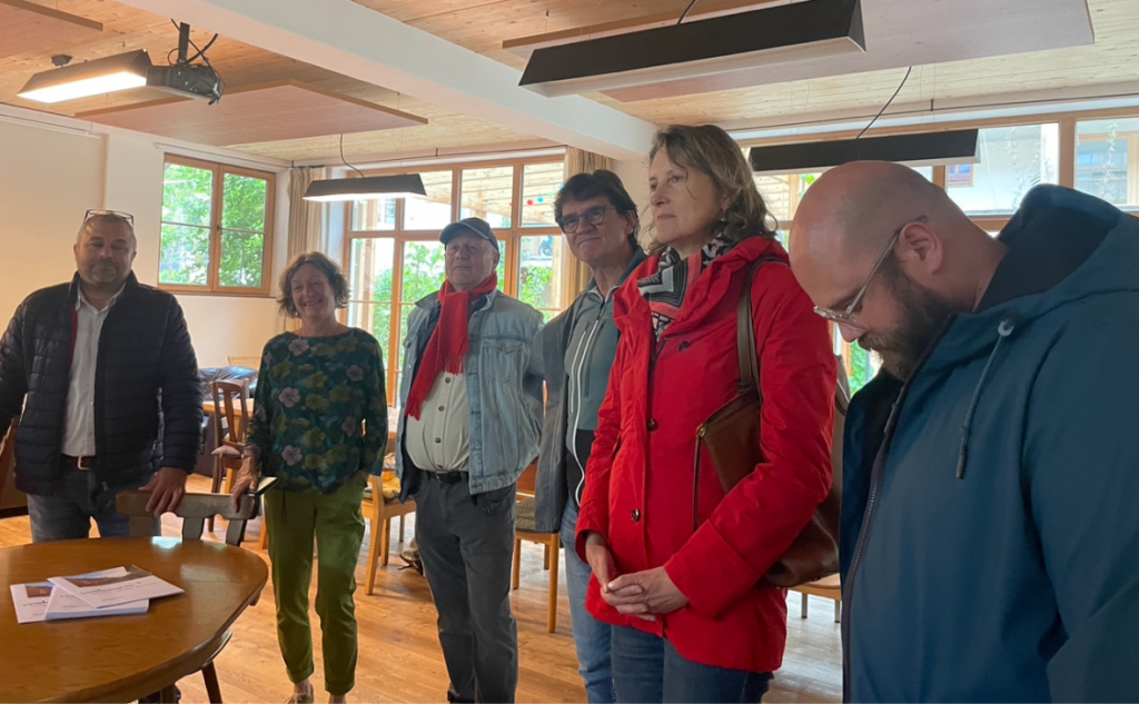 Ende Mai 2025 besuchten VertreterInnen der Stadt Lindau sowie von quartier4 das Wohnprojekt der Genossenschaft wohnen+ in Wangen. Initiiert wurde der Termin von Lindaus Oberbürgermeisterin Dr. Claudia Alfons, mit dem Ziel, interessierten Mitgliedern des Stadtrats und der Verwaltung einen persönlichen Eindruck in das Konzept des gemeinschaftlichen Wohnens zu ermöglichen. Mit dabei waren – neben Dr. Claudia Alfons – der Bauamtsleiter Kai Koschka, Stadtkämmerin Birgit Richter sowie Mitglieder des Bau- und Umweltausschusses und der Fraktionen.